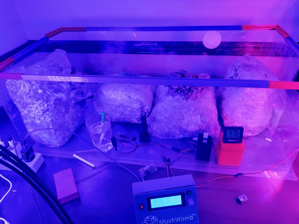 I had been developing a Maker project, a mycology growing chamber with automated humidity, temperature, co2, and light level. My prior chambers had been 1 square foot. i realized I needed to build a new supersized chamber to hold 4 8-pound blocks blocks. So I ordered 1mm thick PETG sheets 2 feet by 3 feet and constructed a chamber 2 feet wide, 18 inches deep, and 12 inches tall. I doubled the humidifier output and built new LED lights to cover the entire area, then adjusted my PID algorithms to be more suitable to a larger chamber.